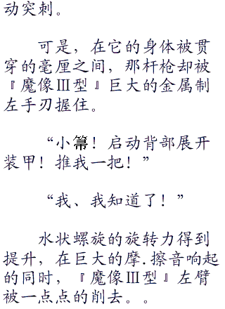 『魔像Ⅲ型』也在同一时刻从左手放出超高密度压缩热辐射线,两股能量就在〇距离发生了冲击,造成了一阵大爆炸。