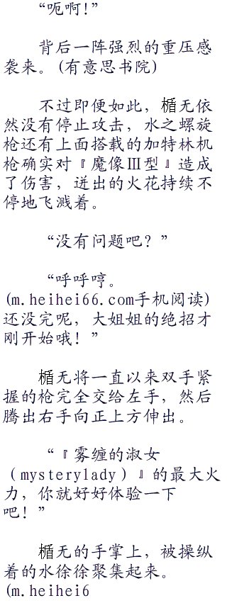 在箒的第四代is『红椿』变形加速的强力推动下,楯无手里‘苍流旋’推动着『魔像Ⅲ型』不断的强压了过去。