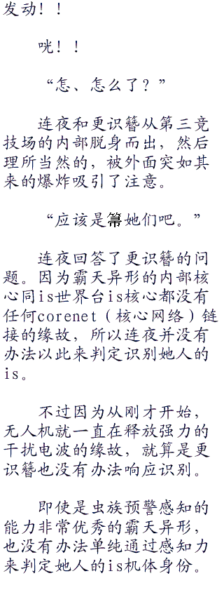 虽然楯无的『雾缠的淑女』和箒的『红椿』都相继发出了靠近竞技场大门的警告,不过两个人统统无视了。