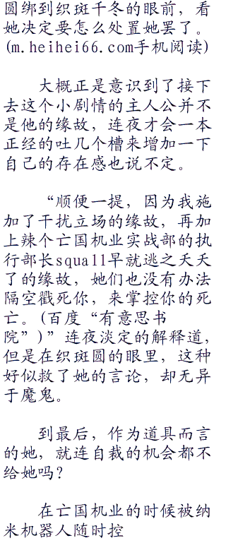 要是不适时的打乱两人之间的对话,或许即使是苏醒过来了的自己,存在感也只是接近于零罢了,所谓作为战俘而言,而且内心又相当憋屈的织斑圆就算再怎么憋屈,也只好自己苦逼的开口道,“我,没死吗?你们把我带到这里到底要干什么?”