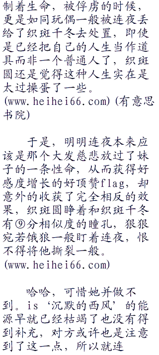 “哎,天天掐弄着只有自己知道的梗,我也是蛮累的诶,你至少应该笑一笑标示肯定我的劳动成果吧。”连夜耸了耸肩。