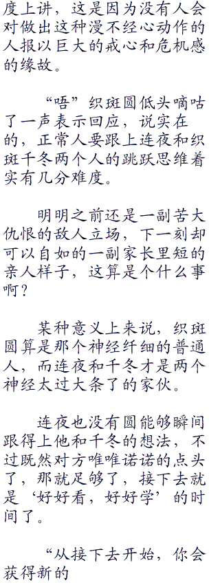 或许是惊喜来得太突然,让圆没有一点点防备的缘故,在织斑千冬说完这句话之后,她直接面色一滞,就这样子呆呆的张着嘴,像是在等人去口〇〇爆她一样,就连千冬已经潇洒的离开了这一点尚未来得及意识到。