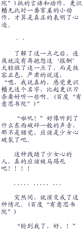 对于连夜不解风、情的破坏气氛,更识楯无感到一阵牙痒痒的,但是考虑到也是自己之前的态度太轻、佻了的缘故,别人不信也是无可厚非的结果。