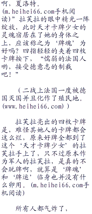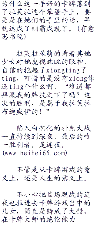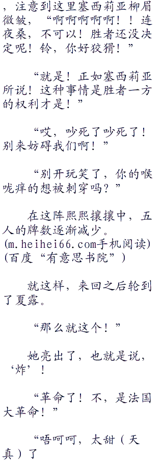 连夜扶了扶额,不只是凰铃音和塞西莉亚,其她的少女也在和无人机的交战当中,或多或少的有了点小伤,但是即使在这种情况下,依旧在打着牌,实在不知道让人从哪里开始吐槽为好。