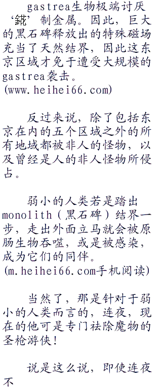 当然了,这其中的问题也在于原肠生物的特殊性,只要是没有附加特殊‘錵’金属磁场的子弹打击,亦或是圣光属性的湮灭能力,普通的刀刃或是攻击就算是打碎了它的身体,这种怪物依旧“五九三”会具有相当程度的自我再生能力,难以抹杀。