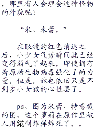 但是,毫无疑问,她是人,一枚粉嫩的萝莉,而非真正的原肠生物,所以本能性的求助是理所当然的下意识之举,即使那种呼救是毫无效果的。