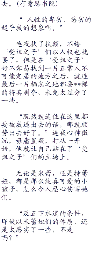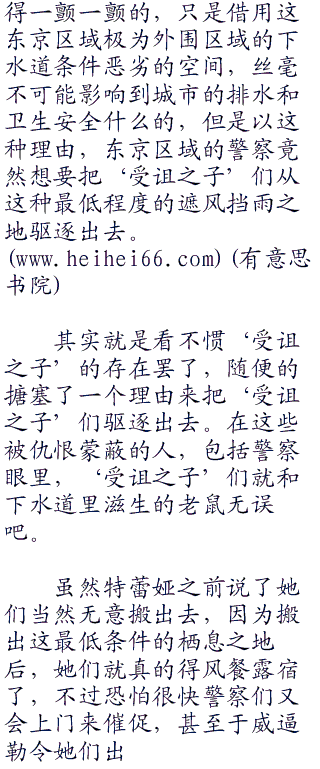 连夜望向被叫做特蕾娅的少女和米蕾所消失不见的下水道深处,下水道内许多的萝莉们也很快的汇集在返回的米蕾和特蕾娅的身边,同她两人搭着话。