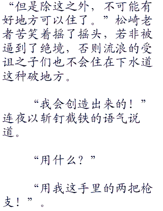 松崎老者转动着拐杖愉悦地对连夜说明。从这一点上,可以看出老者的确是抱着为‘受诅之子’们好的和善想法,和连夜算是站在同一个立场上的人。