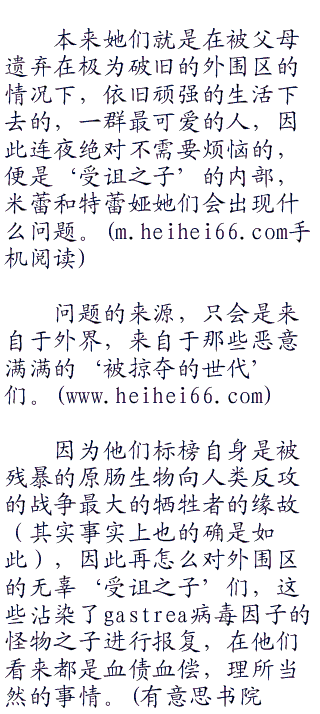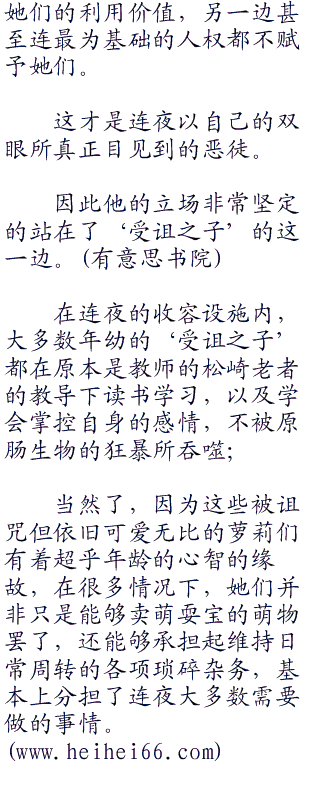 但也正因为如此,在这所有人都不愿意居住的废都所建立起的‘受诅之子’的小少女们“八一七”的收容所,完全可以充分的做到甚至在即使不和东京区域内围交流的情况下,也可以做到充分的自给自足。