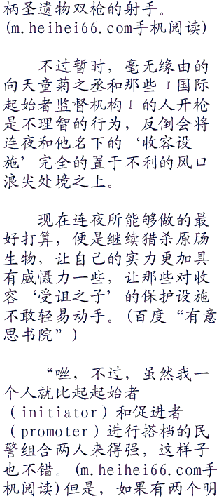 “在他们入土之后,我才能入眠。”连夜握了握拳头,在心里给天童菊之丞以及『国际起始者监督机构』的下了裁决书,只要有合适的机会的话,他绝对不会忌惮杀死这些人,即使杀人是一种恶习,但有一些事情,总也是不可避免的需要动用到暴力的时候了。