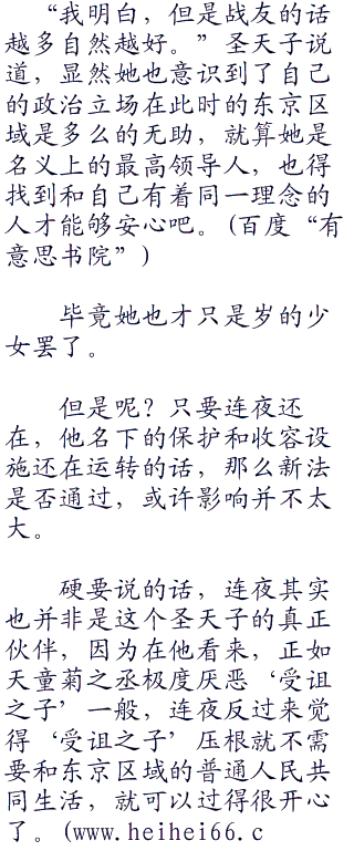 连夜认为这并非是圣天子一人的善意就所能解决的问题。当然了,如果像圣天子以及松崎老者这样子的重视‘受诅之子’人权的人多一些的话,这样子的问题就可以迎刃而解了。