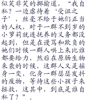 可以说,几乎全部经历过大战时代──“被掠夺的世代”都是潜在的对被诅咒的孩子们的差别主义者。在这种状况下,会表示同意这个法案通过的人会非常少。