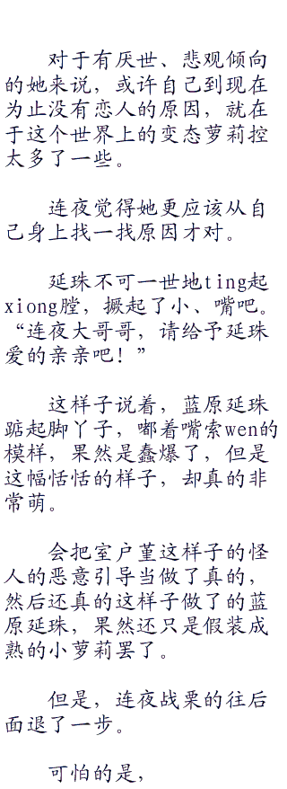 不知道是什么碎掉了身影,是少女的腿骨亦或是大树的树干,但是总之不管结果是什么,对于延珠来说都是极为痛苦的结果。