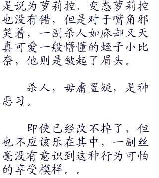 “问题是为什么这么简单的委托要附上那破格的委托费用而且要委托民♂警中的顶尖高手呢。这一点我无法理解。既然如此,我会怀疑这个委托存在与价格相当的危险那也是理所当然的不是吗?”