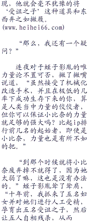 “我的意思是,旧人类实在是太过弱小并且肮脏不堪了,将来的世界,将是有这些强大的孩子们所主导的世界啊,不是吗?”