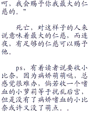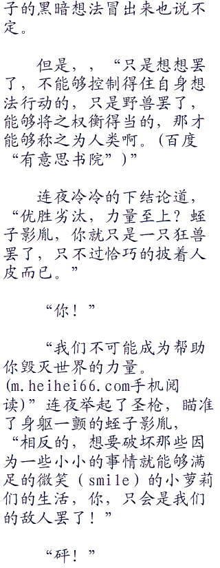 连夜虽然想用这样子的说法来解释小比奈身上的情况,但是从她那一副随时想要砍人的冲动神色来看,连夜很难说小比奈是否能够从那样子的嗜血状态当中恢复过来。