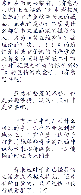 “这里啥都没有,你就随便坐吧。”室户堇落落大方的招呼道,但是招呼人坐在这种阴暗的地方,某种意义上就已经是很失礼了。