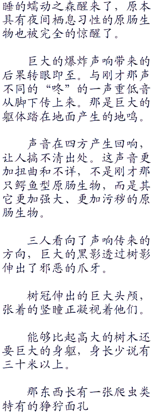 陷入狂暴状态的原肠生物开始凭借着残余的本能猎杀能力行动,那庞大的身躯只是以中等速度扑腾了两下,便凑到了薇恩的身前。鳄鱼型原肠生物张开的血盆大口当中,可以看见慑人的尖牙,恶臭的涎水味道从中散发而出。