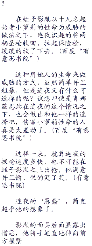 连夜皱了皱眉头,单身已经几十年的蛭子影胤手速显然惊人,就算朝着他的手腕