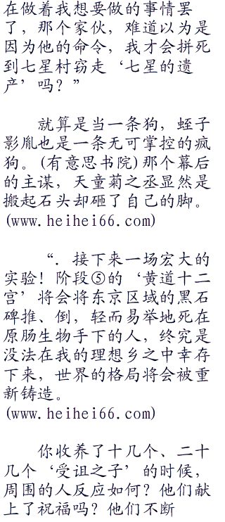 蛭子影胤的将手指扣在了遥控器之上,即使他被圣光的子弹侵蚀得已经虚弱无比,但是毫无疑问,按下这个远程操纵器的起爆按钮,还是很轻松的一件事情的。