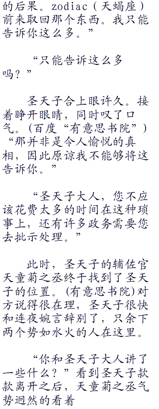 圣天子也不是蠢材,相反的,她比起前几任的圣天子都要来得出色并且具有能力,不过,即使她很清楚这件事的背后主谋是天童菊之丞,一时间也不可能将他缉拿归案。