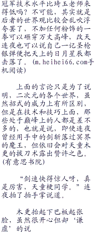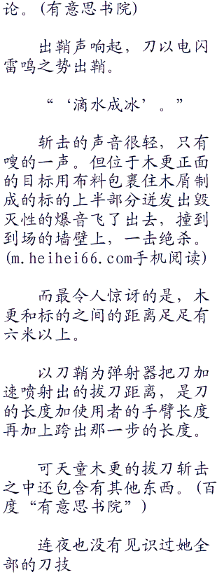 天童木更御剑的架势里没有半分漏洞,双手持剑的御武姿势,其发出某种东西让连夜确信,不论从哪个方向攻过去,一踏入她的斩击范围必然会遭受到无情的斩击。