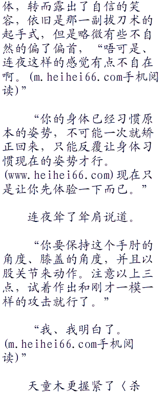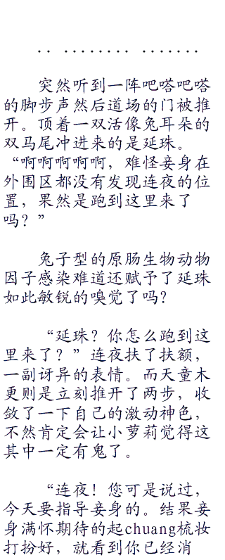 连夜也有一点自己在做坏事的错觉,但他还是专心一志地持续为天童木更进行姿势的细微调整,毕竟这是有必要的肃正。