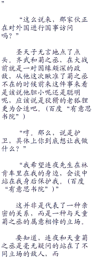 “好吧,老实说,如果没事的话我可要走咯。”连夜爽朗的一笑,刚才也只是稍微逢场作戏罢了,他才不会因为圣天子的地位而产生敬畏。