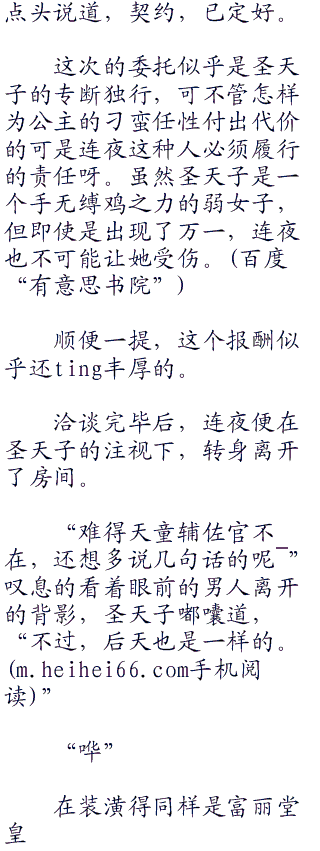 这些具体注意事项的交流花了一个小时左右,期间圣天子竟然可以做到在谈吐这些极为枯燥的言辞的时候依旧有声有笑的,实在令人不得不心疼她的不辞辛苦;至于连夜的话,也顺便心疼一下他要记住圣天子那像上了发条加速一般的时程管理安排吧。