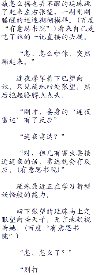连夜低下头,轻轻抚摸熟睡的延珠的肩膀到背部,片刻无言,然后抬起头。