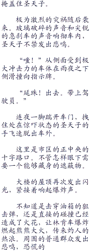圣天子合起双手,做出祈祷的姿势。“连夜先生,我无法忍受有更多悲伤的种子洒向这个世界,所以,就算是尽自己的绵薄之力,我也希望能够拯救那些可能陷入战乱的普通民众,包括‘被诅咒的孩子’们。”