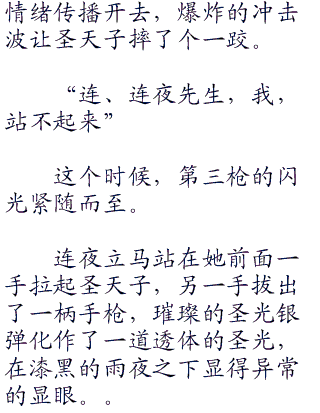 连夜并不是没有办法和别人正常的交流,说服对方,但是对于圣天子这种和他不在同一条道路上的人,连夜其实是很明确自己讨厌她身上的某一些理想主义的,v但是,这样子的‘笨蛋’要是死于刺杀事件当中,才是更加令人感到悲伤的一件事情吧。