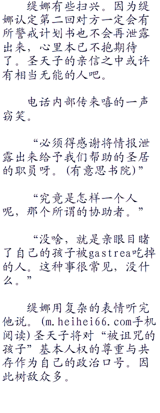此时,无机质的手机的铃声插进两人之间,是缇娜的手机响了。