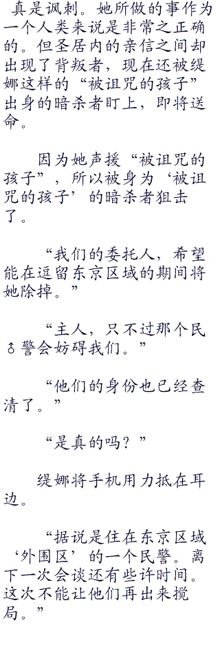 “这或许是我有生以来第一次被人如此温柔地对待。”缇娜或许是想起了不愉快的事,稍稍合上眼睛,蜷缩起腰,这是没有安全感的体现。
