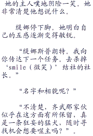 缇娜对眼前的一切事物都感到很稀奇,连夜看着她这幅表情衷心地感到愉悦,但她同时也有着对连夜提出“请不要和任何人提起与我见过面”这种条件的神秘的一面。