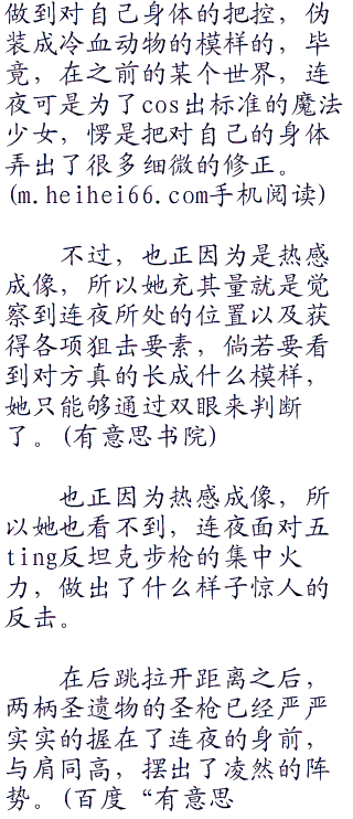 因为是热感成像,所以连夜就算是藏在那个角落都是没有用的,因为他毕竟不是冷血动物,事实上,如果非要这么做的话,连夜还是可以