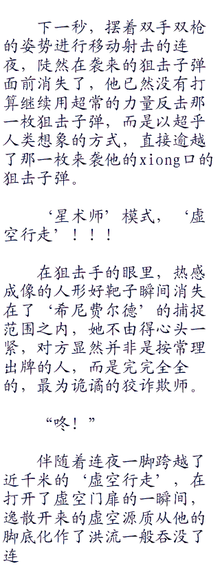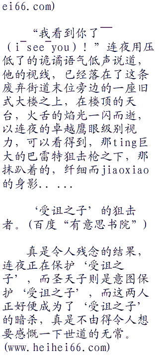 无论如何,只要看清那个潜藏在黑影中的狙击手的下一记狙击所喷吐的火舌,就可以明确对方身处在哪一个地方上了。