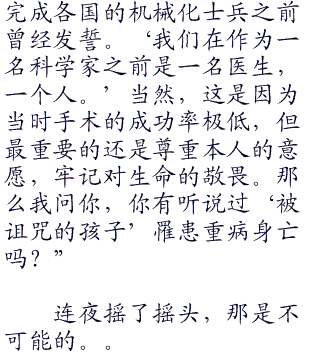 连夜意味深长的叹了一口气,从某种意义上来说,缇娜最近的确已经很久没有合眼了吧。因为是猫头鹰因子的起始者的缘故,基本都是在晚上执行暗杀活动的准备和实战,而白天的时间要么像是争分夺秒一般的拉着连夜出去玩,要么是因为某些准备事故,需要逼迫自己一直食用含有大量咖啡因的药物来维持一定程度的清醒意志。