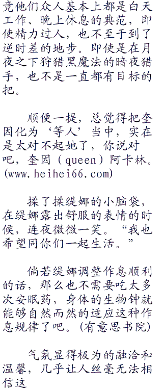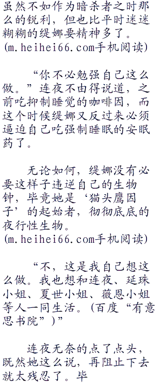 “昨天晚上我吃了安眠药,把自己的作息调整为白天活动了,所以没问题。”缇娜眨了眨眼睛说道,视线