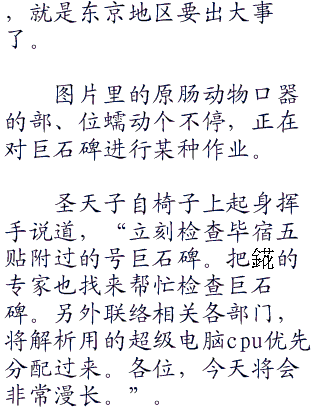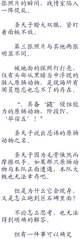 佐藤吓傻了。内心发出不知道是今天第几次的为什么」疑惑。巨石碑绝对不可能让地上的原肠动物接近。但是这么理所当然的事,就在眼前以最可怕的形式遭到践踏。