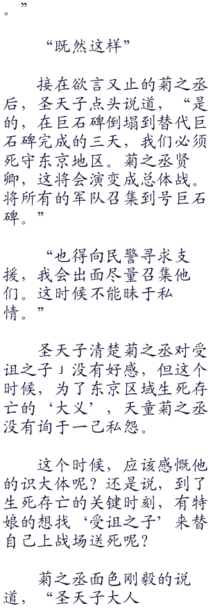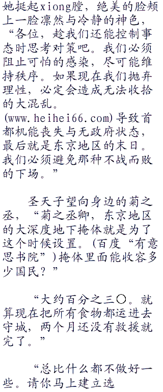 “由崩塌处大量涌入的原肠动物会引发大感染,东京地区的市民两天后会有七成、四天后则是全数死亡。东京地区就此完蛋。”