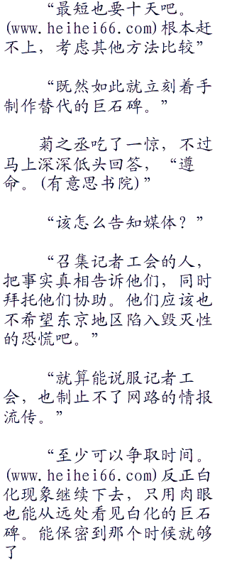 就在这时,脸色大变的分析官高举一叠文件冲过来,“超级电脑的分析结果出来了!侵蚀液无法从巨石碑上清除。再这样下去,一星期后白化现象就会扩散到整座号巨石碑,使其失去磁场产生能力,最后崩塌!”