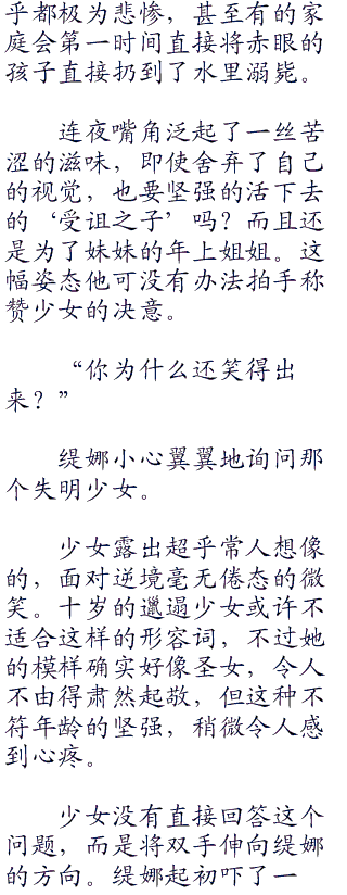 少女端正的五官肮脏不堪,披着满是油污的披肩,因为消瘦而愈加显得激aoxiao的身形,更是给人以孱弱的印象。
