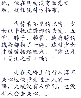 天桥的一沿有一张草蓆铺在地上,声音是从那上面的人口中发出的。