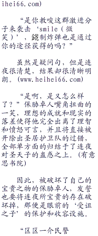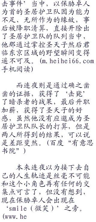 “什么啊,这个不是前圣居护卫队队长,保胁卓人先生嘛”连夜扶了扶额,虽然说他老早就把关于这个无聊的家伙的任何情报都扔进了脑内的‘回收站’,然后一键清空掉了,但是正如被回收站清空的文件还是可以通过技术手段找回的,连夜倒还不至于记性差到这么快就忘了保胁卓人这个人的嘴脸如何。