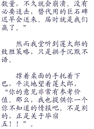 虽然他并不觉得,事到如今,这有什么值得赞叹的地方。他并非是喜好展示力量的人,不然身为同蛭子影胤一样的‘机械士兵’的事实,也不会直到如今才被人知晓了。