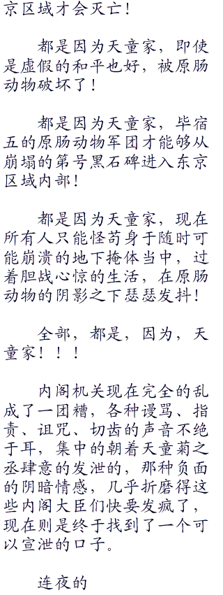 天童菊之丞一向都是不动如山的沉稳性格,而一旦发声,则宛若伏击着的猛虎扑击而出一般的威严,但是一直以来他自然是不可能对圣天子摆这种缄口不语的谱的。