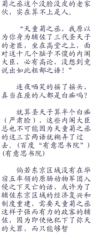 指挥中枢的现场已经乱成了一锅粥,没有演变成天童菊之丞人人喊打的暴力现场,已经可以说是这些内阁大臣们各自的隐忍和克制能力很强了。