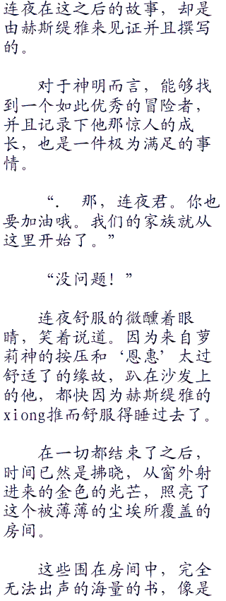 她的声音随即响起,告诉连夜,这就是镌刻‘神之恩惠’所要进行的仪式了。