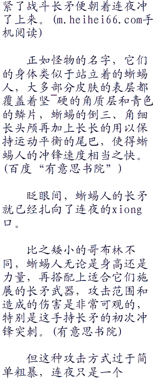 它们原本坐在了篝火旁边,架起土灶,吃着粗糙的,在连夜出现的一瞬间,蜥蜴人便飞速的蹿了起来,抓紧了长矛的武器,龍蛇一般的竖瞳瞬间将危险的气机锁定在了连夜身上。
